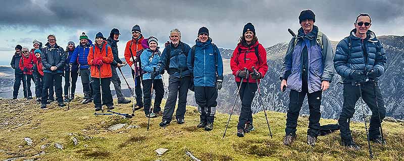 Wedi’r cyffro yna, cinio nesaf, ger copa’r Garn. Hyfryd iawn oedd cyfarfod criw Bethesda yma, oedd wedi dod i fyny Cwm Padrig ac yn mynd dros yr Elidir yn ôl.