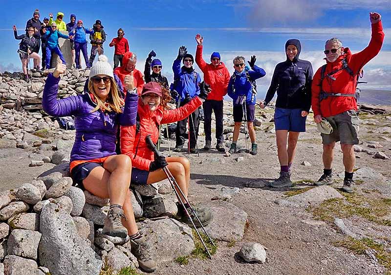 Dwynwen, Andras, Anna, Anwen (Cricieth), Dylan, Eryl, Gaynor, Gerallt, Gethin, Iolo, (Jano (Cricieth), Llywarch, Mabon, Mark Wyn, Sandra, Sioned Llew, Sioned Prys, Tegwen. 18 o’r aelodau yn mynd gyda ei gilydd i gyrraedd copaon Ben Macdui (1,309 m) a Cairn Gorm (1,244 m). Diwrnod cyntaf da a’r haul yn tywynnu a phawb yn ei “shorts” ond gwynt cryf o’r gogledd (Wind Chill o -2ºC).